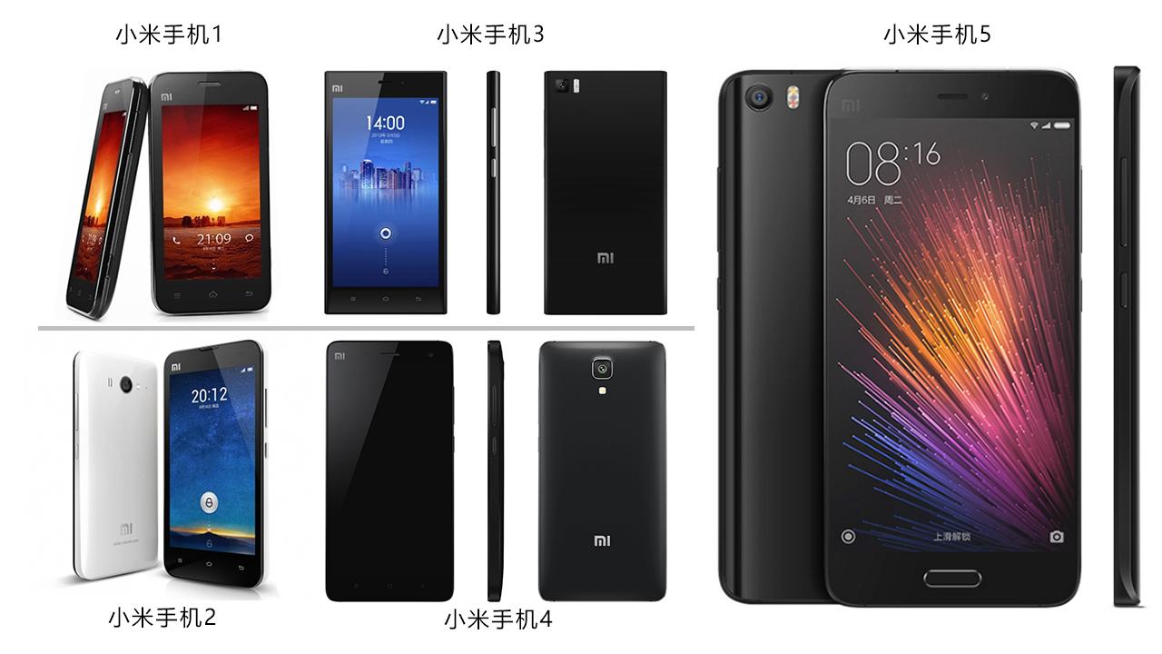 | 小米手机1 | 小米手机2 | 小米手机3 | 小米手机4 | 小米手机5 | |